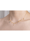 Esta es una de nuestras cadenas especiales que te evocan a llevar esta joya como un amuleto en tu día a día. Estas cadenas multicharms están hechas con materiales de alta calidad, bañadas en oro goldfield, y adornadas con elementos como murano, perlas de agua, acerina, canutillo checo, chaquiras y placas con mensajes inspiradores.