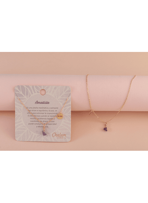 Nuestras cadenas de piedras naturales Amatista están bañadas en oro goldfield de alta calidad y cuentan con y especiales que resaltan la belleza de cada piedra natural y el mensaje que transmite. Cada cadena viene con una etiqueta que describe las propiedades y beneficios de la amatista, para que puedas identificar la que más se adapte a ti.