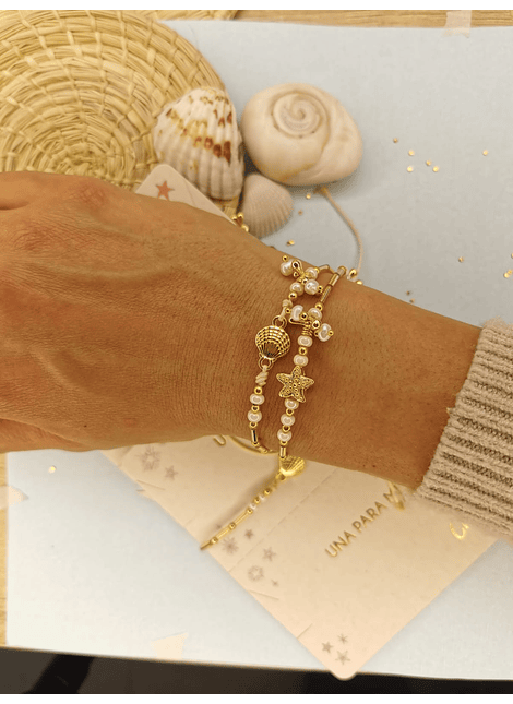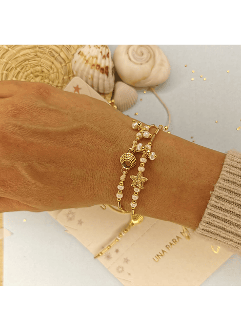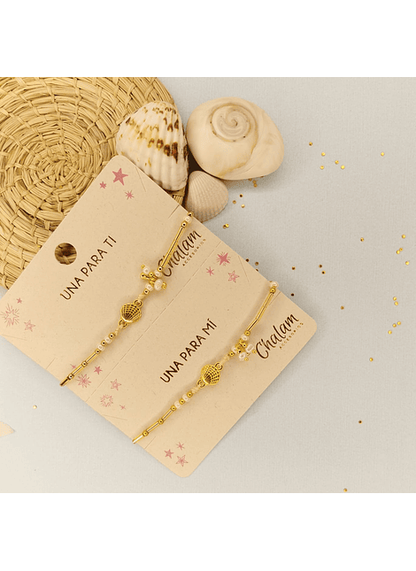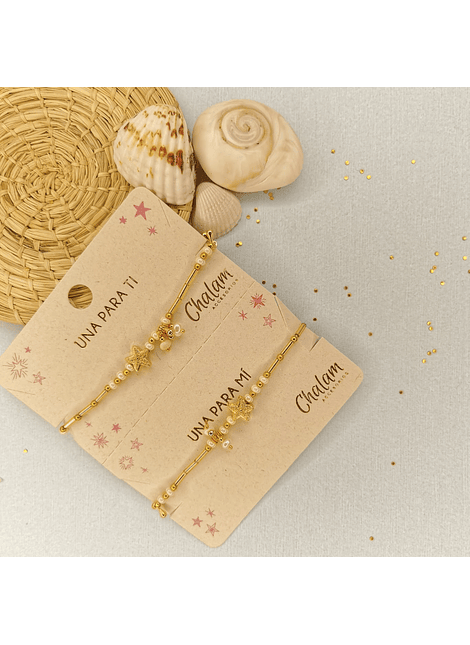 Vienen 2 pulseras para compartir. Elige los dijes de preferencia entre: Estrella de mar y Concha de Mar